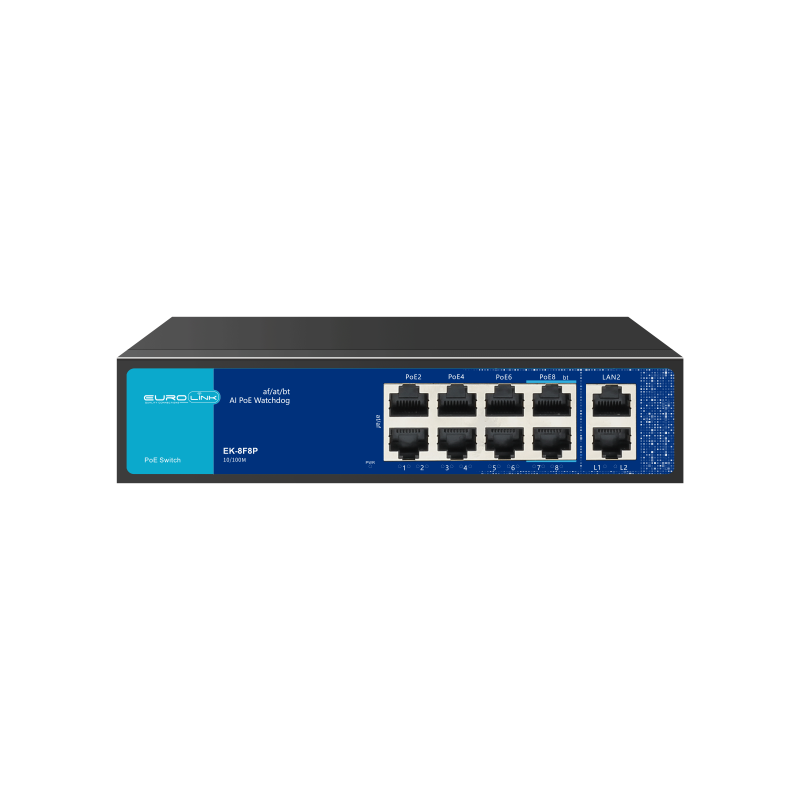 Switch / 8 PoE + 2 UpLink / FE / 120W / Eurolink EK-8F8P quantity